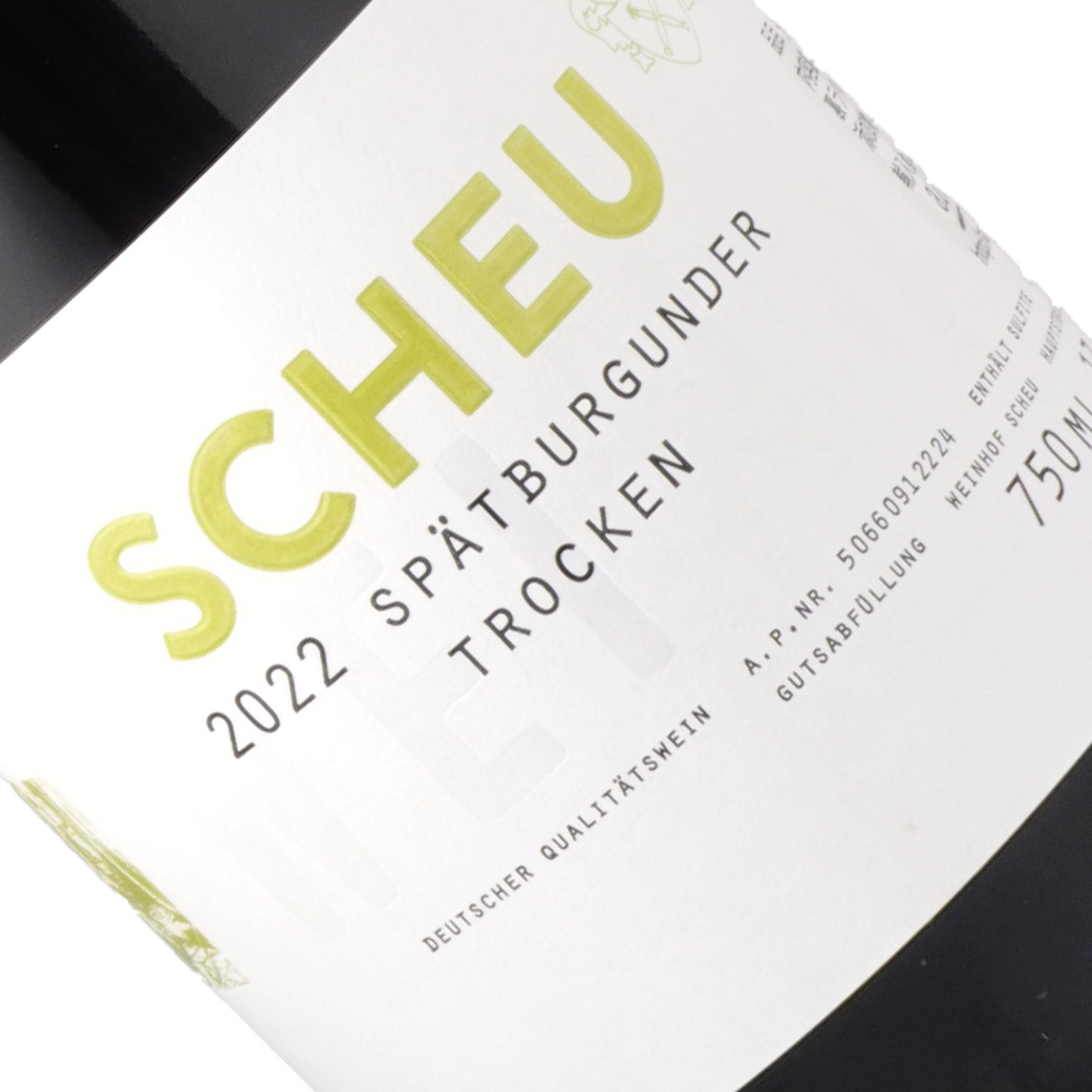 ヴァインホフ ショイ シュペートブルグンダー トロッケン グーツヴァイン2022原産地呼称等:QBA ファルツ|色:赤 容量:750ml|種類:スティルワイン|希望小売価格:2,800円(税抜)|品種:シュペートブルグンダー(ピノ・ノワール)100% |JAN:4260159513073