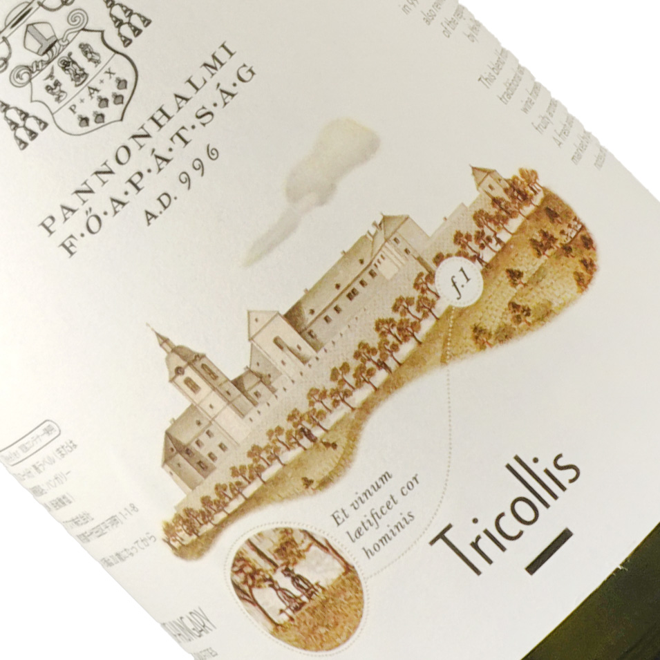 ワイン名の「トリコリシュ」とは「3つの丘(パンノンハルマ内には教会や修道院などが立つ重要な3つの丘があります)」という意味ですが、このワインも3種の葡萄をブレンドしていることからその名が付きました。