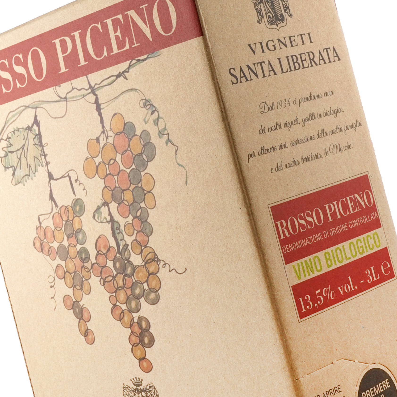 サンタ リベラータ ロッソ ピチェーノ DOC BIB 3?2023原産地呼称等:Rosso DOC ピチェーノ|色:赤 容量:3000ml|種類:スティルワイン|希望小売価格:4,100円(税抜)|品種:モンテプルチアーノ% サンジョヴェーゼ% |JAN:8026065330021